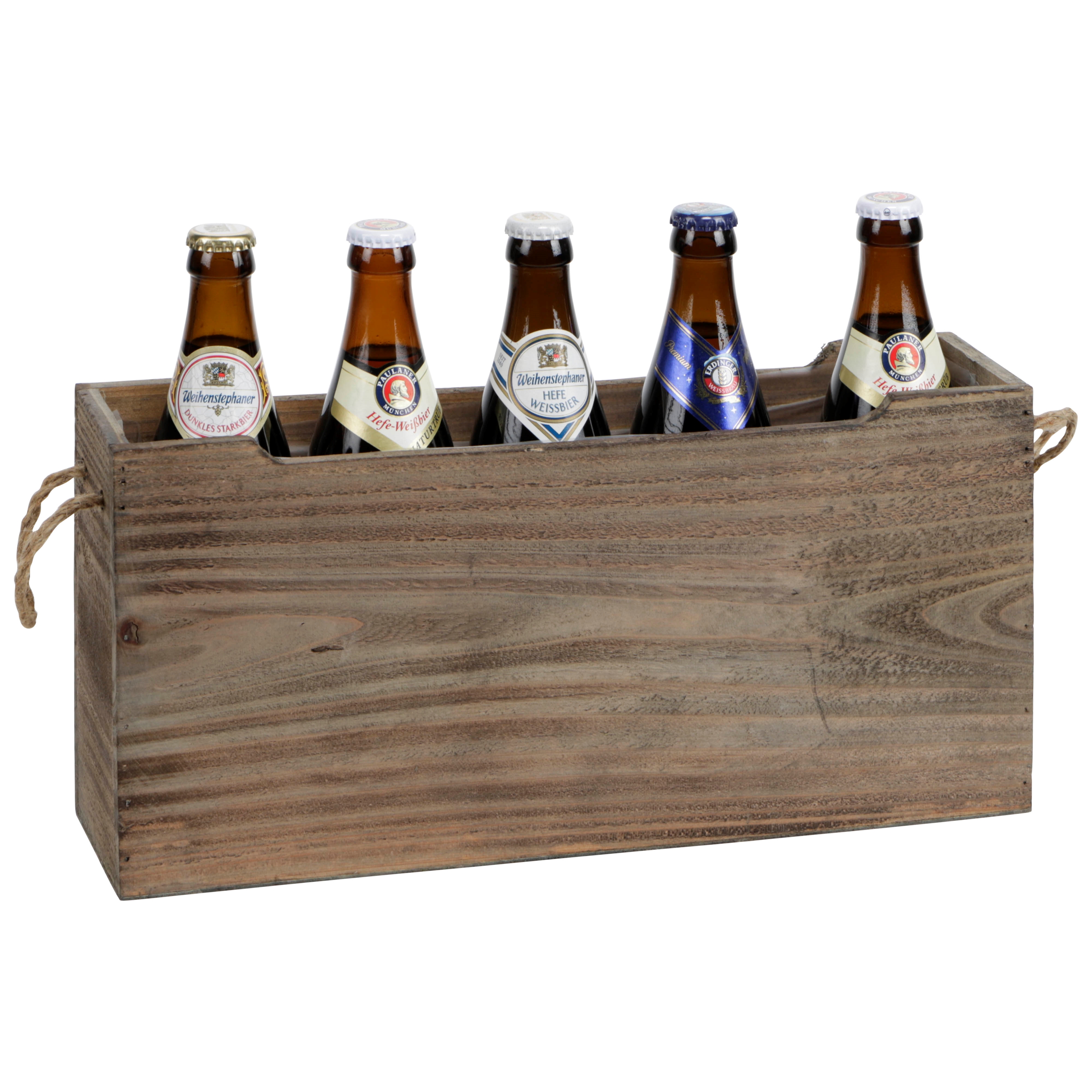 - Houten bak 37x8x19 cm bruin met touwgrepen