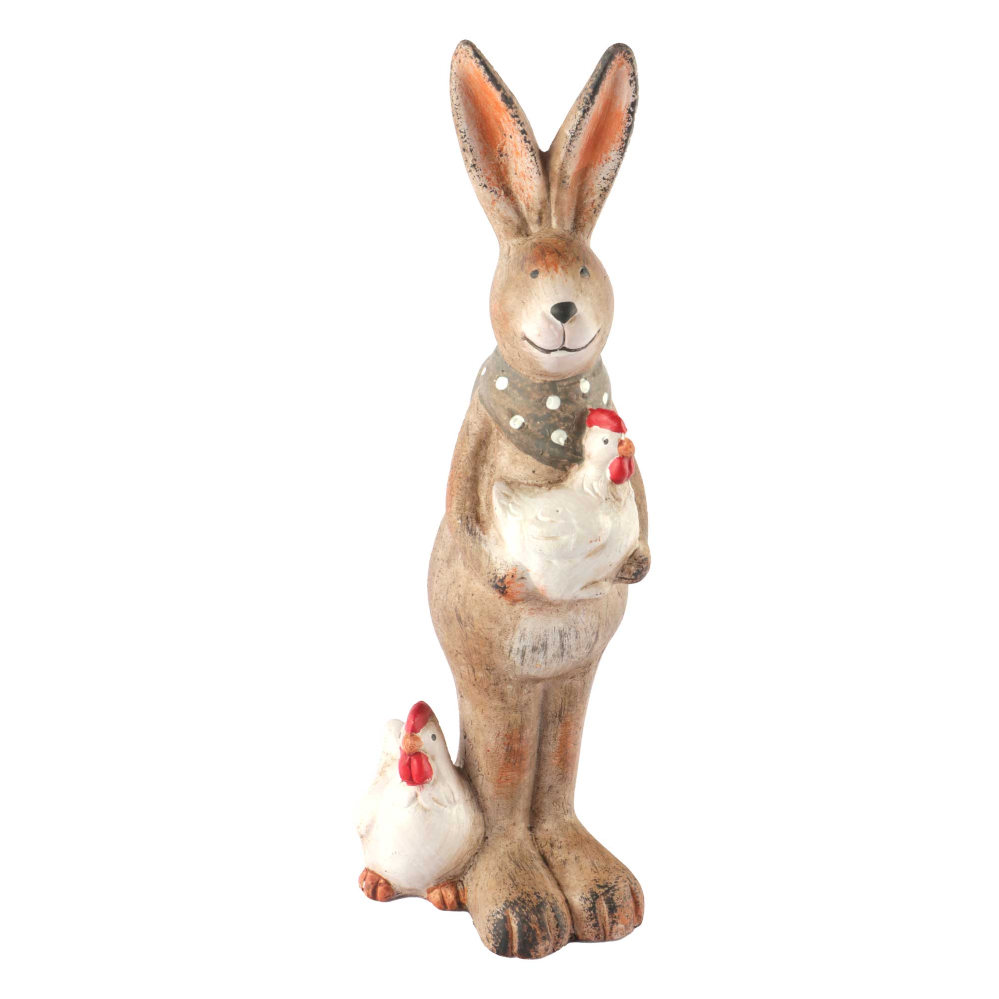 - Konijn staand met 2 kippen 8,5x8x24,2 cm bruin