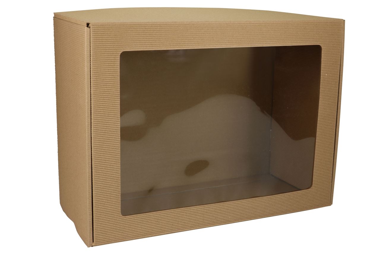 - Shrink Pack of 10 window boxes 39x29.5x18 cm open corrugated kraft paper