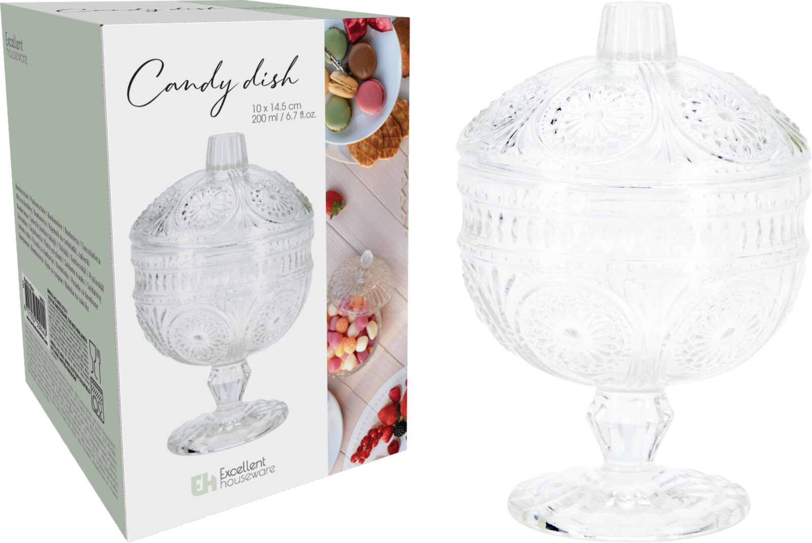 - Bonbonniere glas 9,7x14,8 cm met deksel