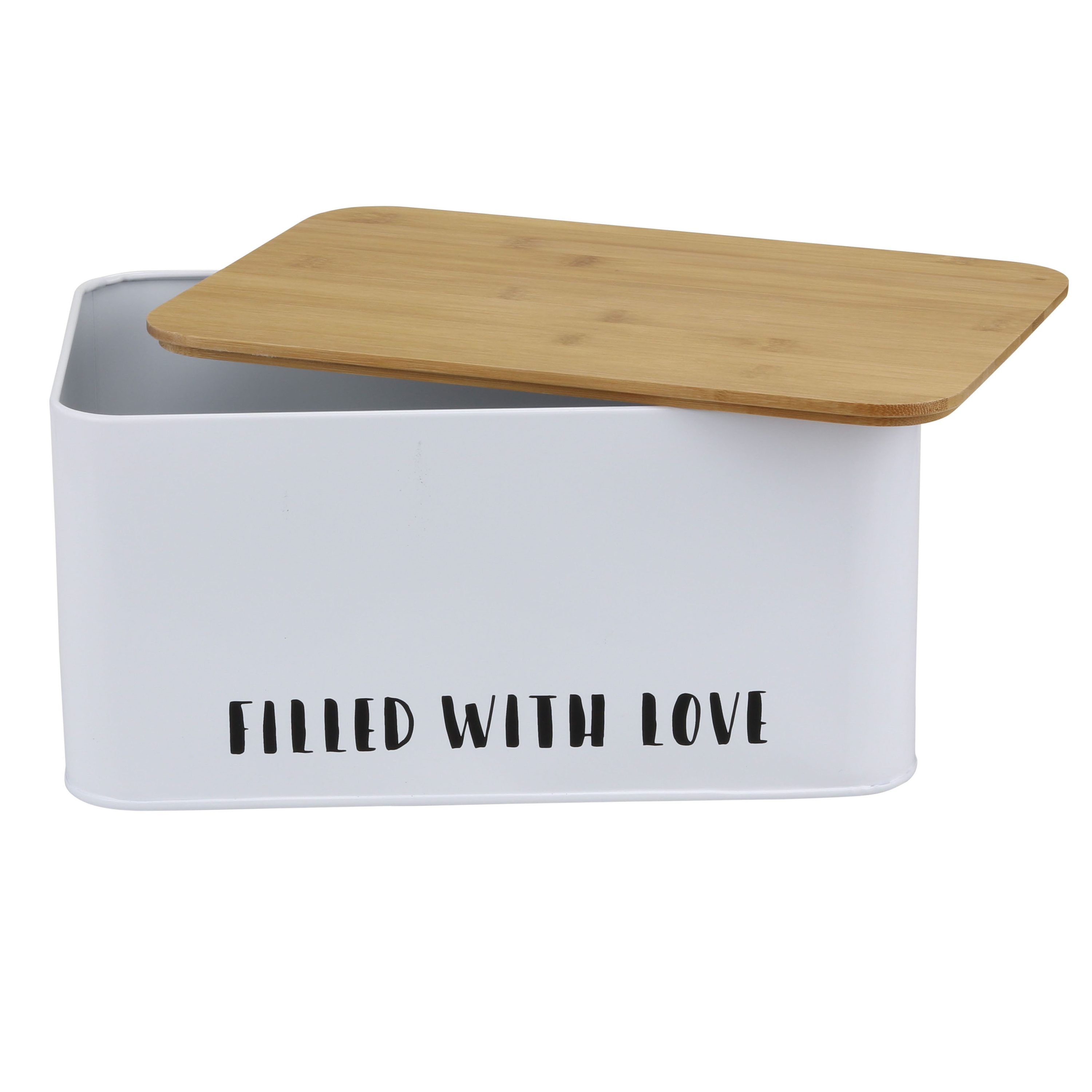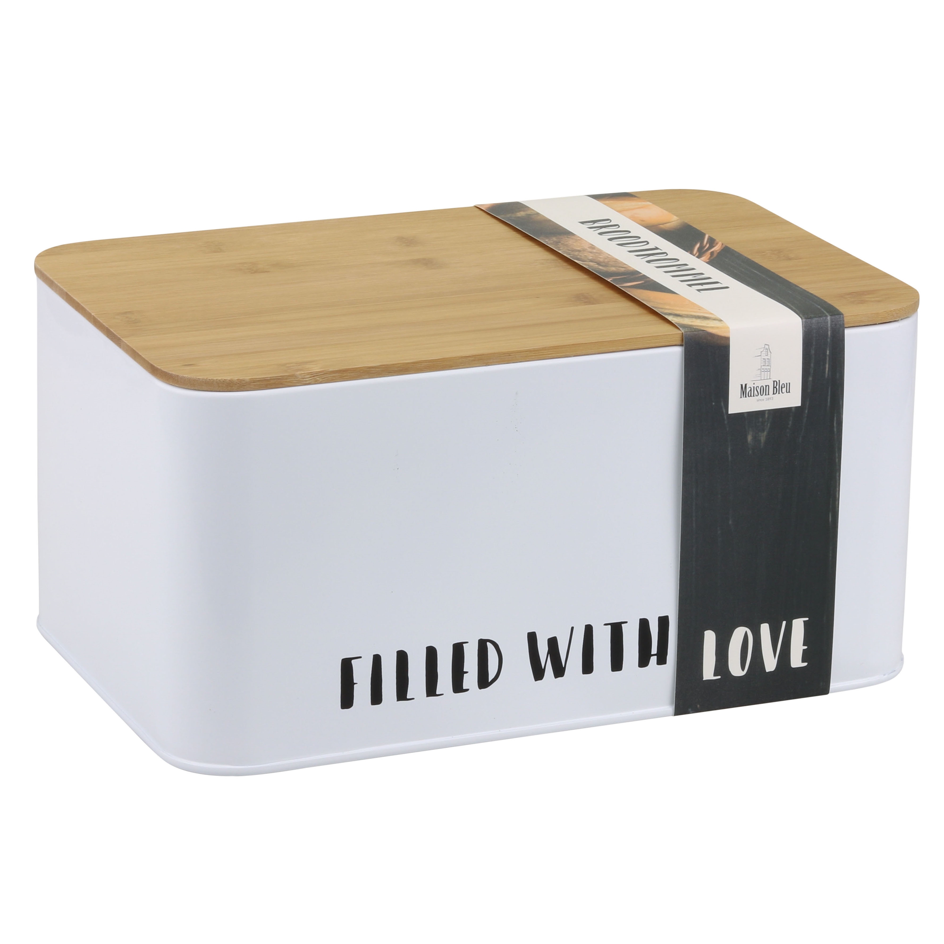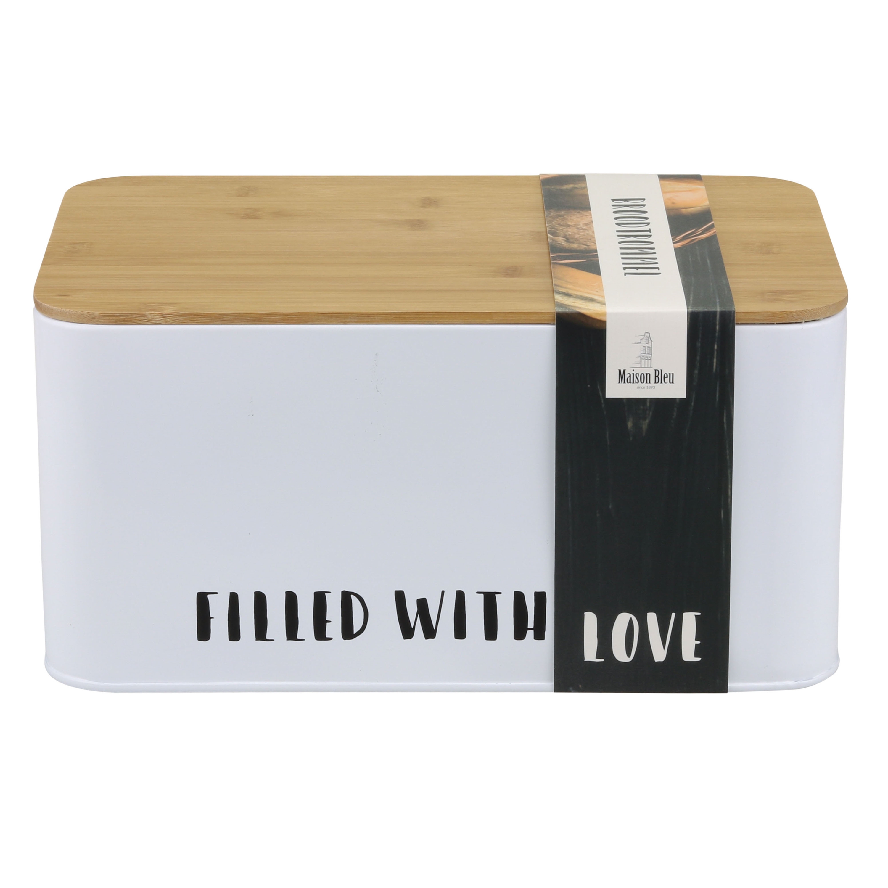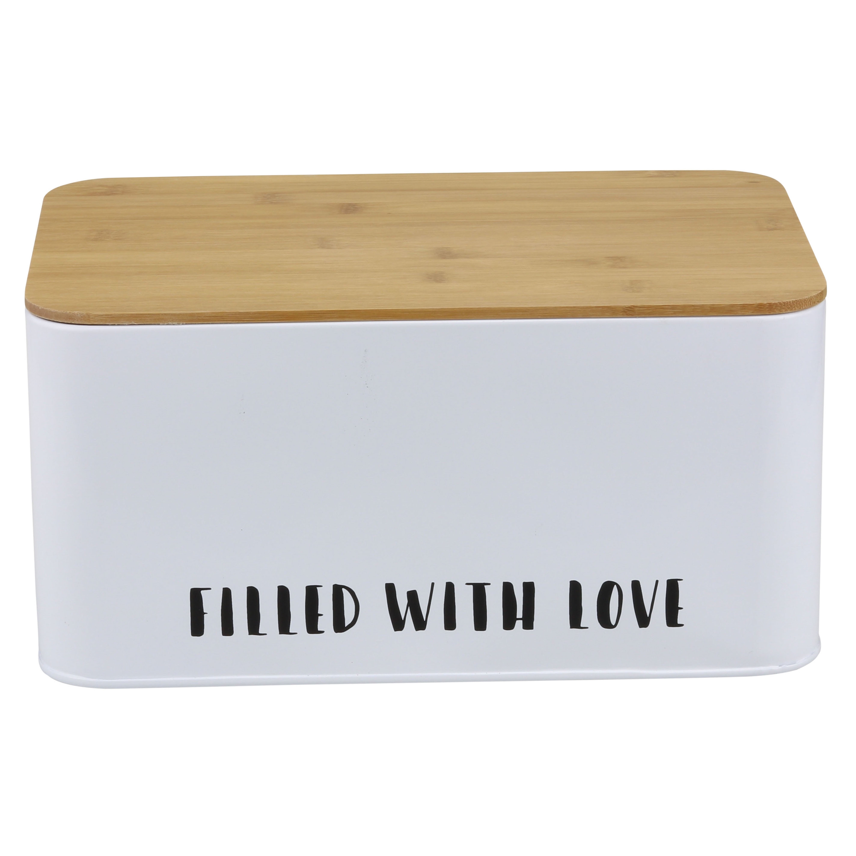 - Broodtrommel metaal 32x21x16 cm wit met bamboe deksel