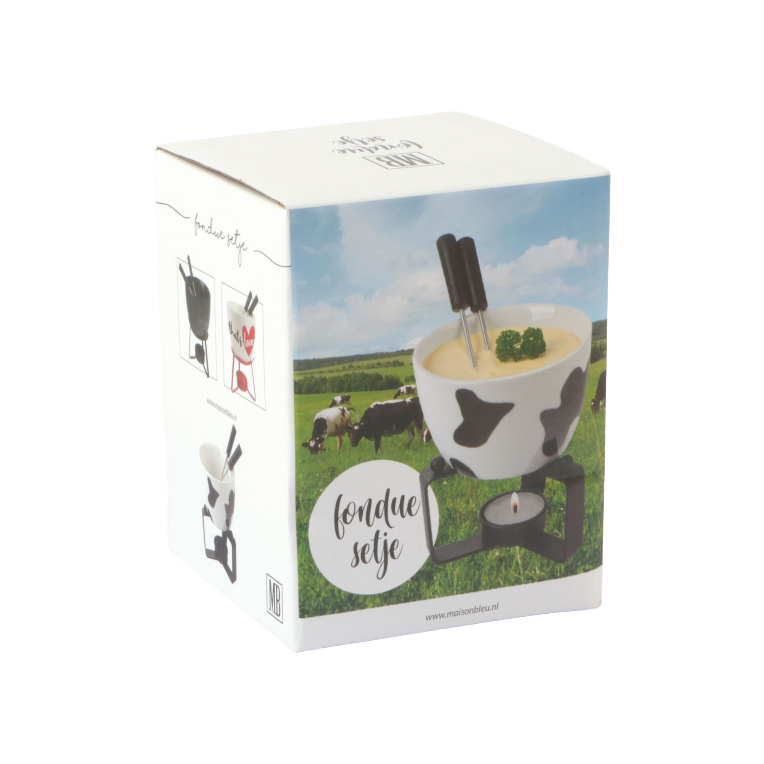 - Fondueset met 2 vorkjes wit/zwart koeprint