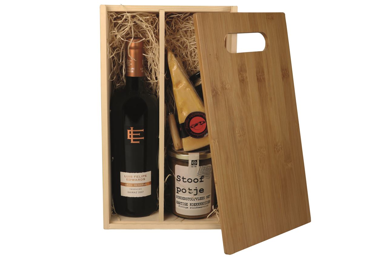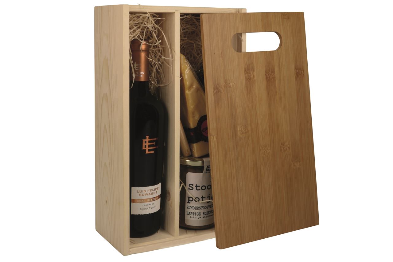 - Kist 2 vaks met bamboe snijplank 33,5x19x9,5 cm