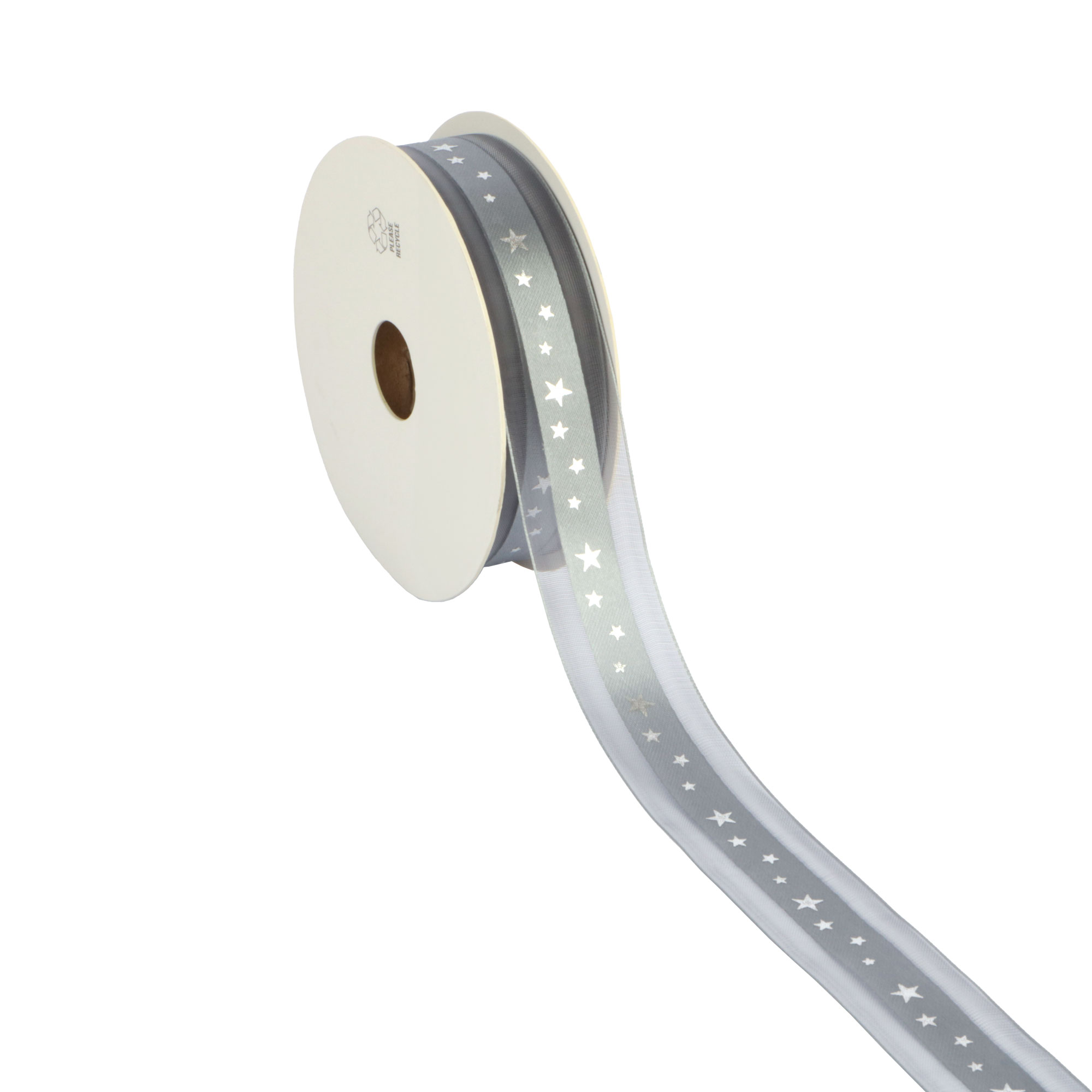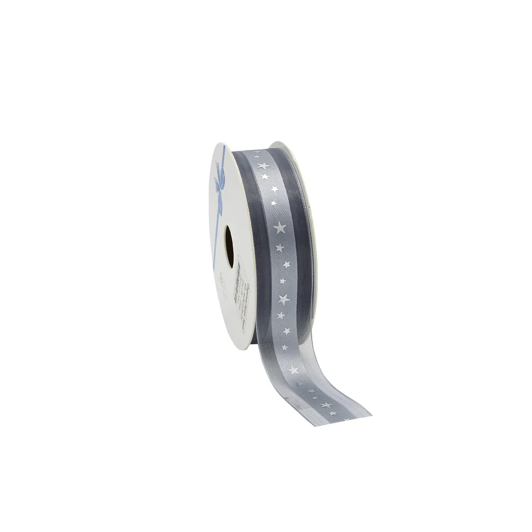 - Rol lint organza met satijn 25 mm 20 mtr Stars zilver