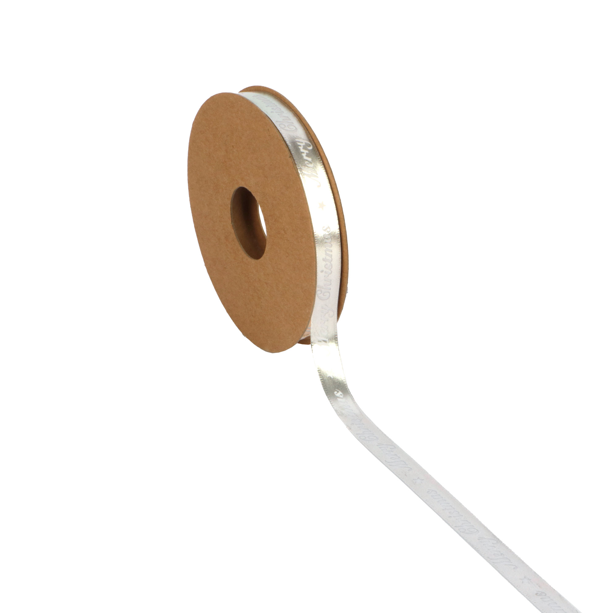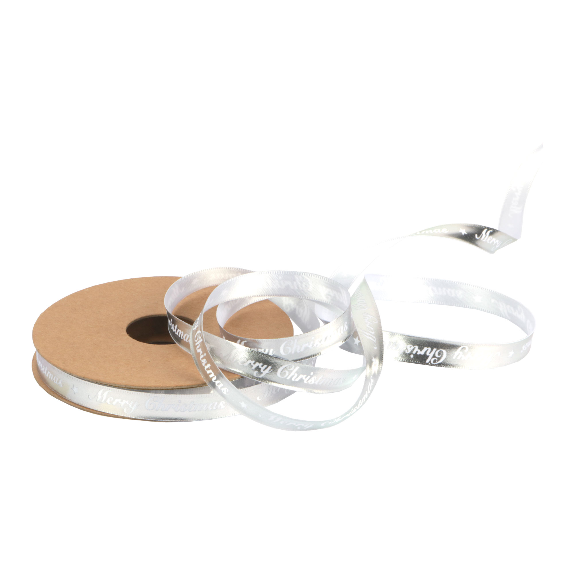 - Rol satijnlint 10 mm 20 mtr Merry Christmas glimmend zilver