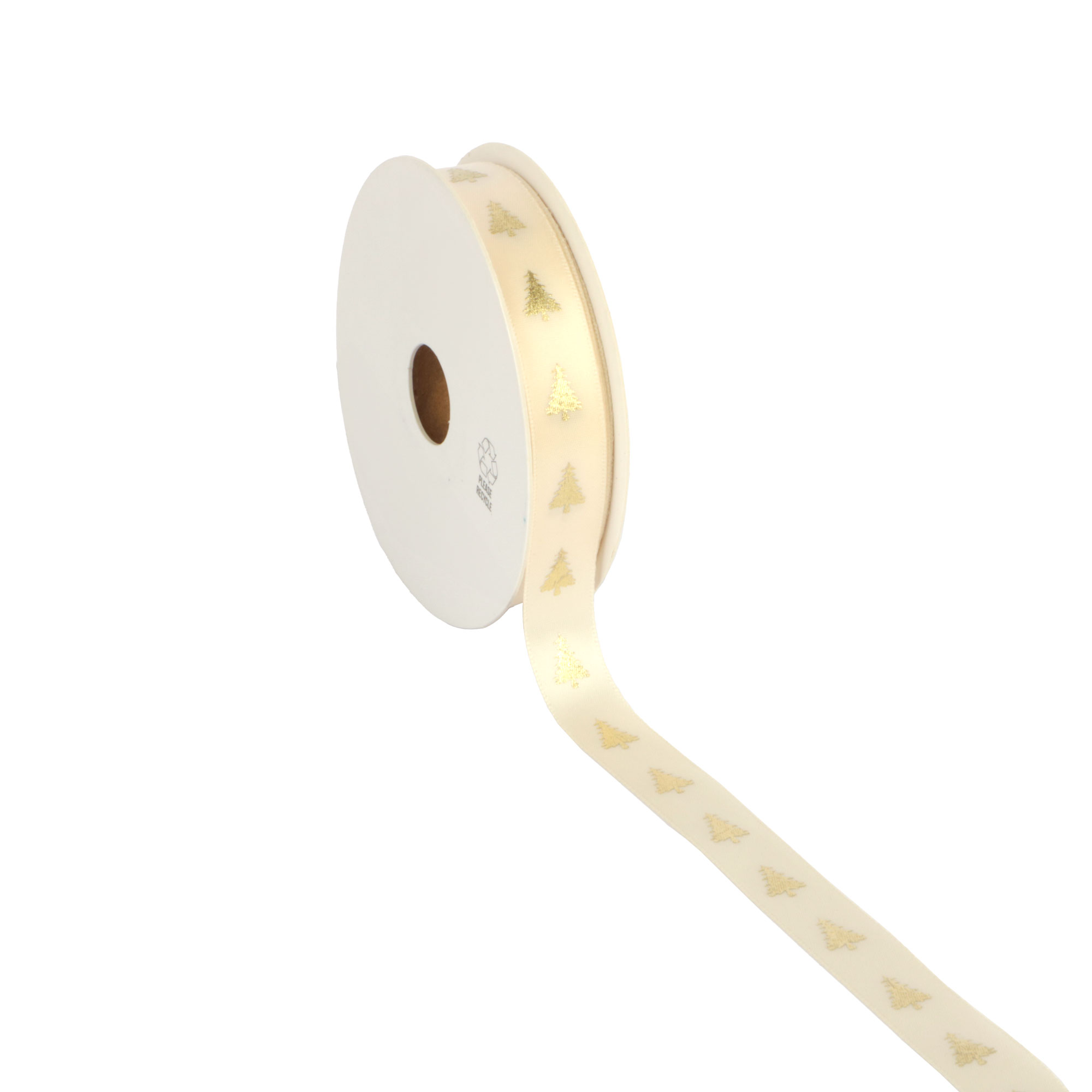 - Rol satijnlint 15 mm 25 mtr Kerstboom crème