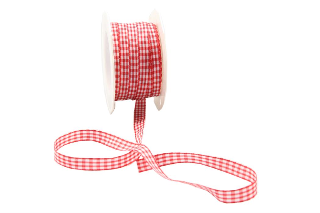 - Rol textiellint 10 mm 20 mtr ruit rood/wit