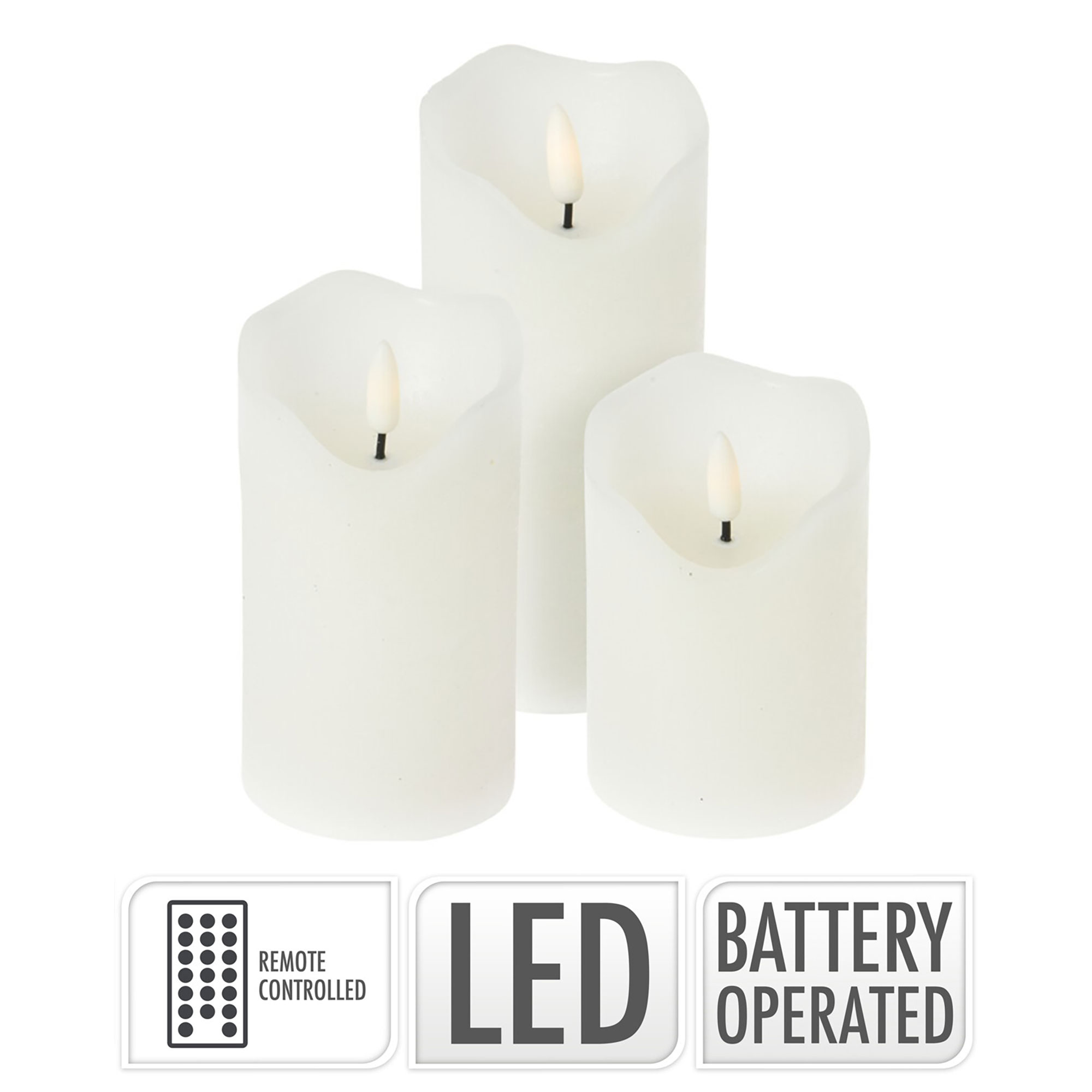 - Set à 3 Ledkaars wit met afstandbediening