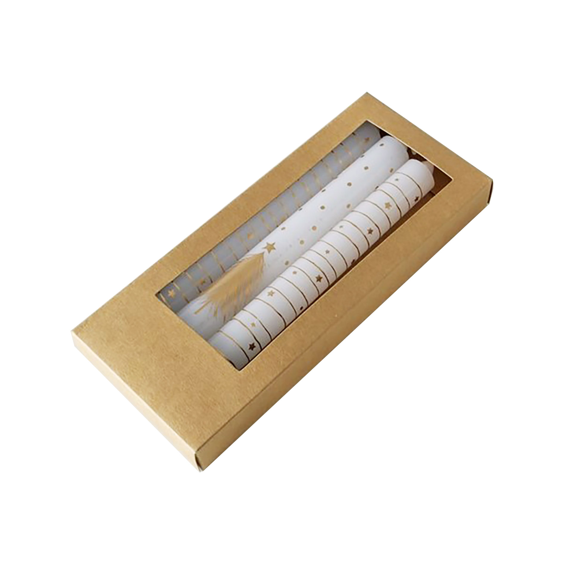 - Set à 4 dinerkaars 2,2x20 cm kerstbomen, sterren wit/goud