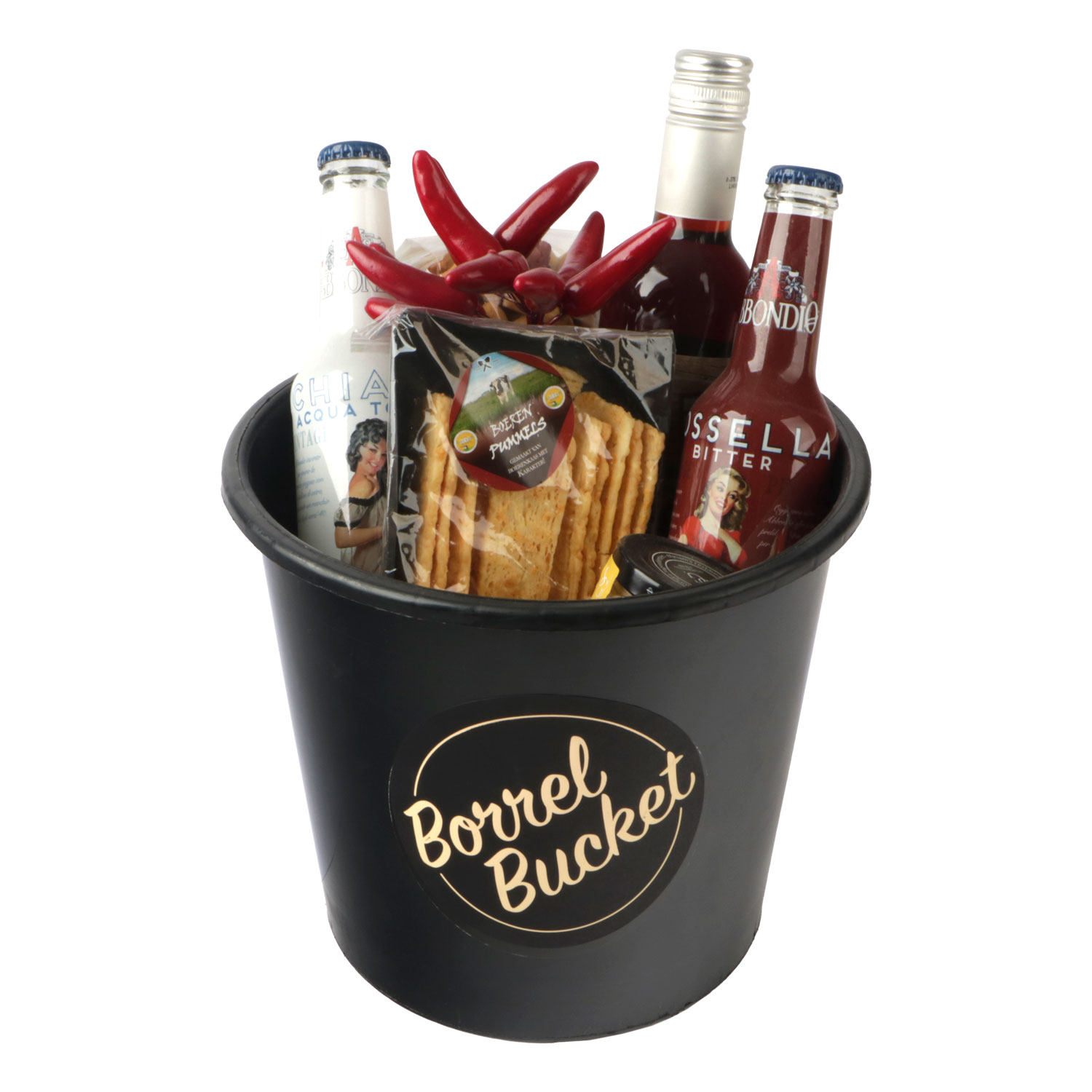 - Zwarte kunststof emmer 23x20 cm Borrel Bucket